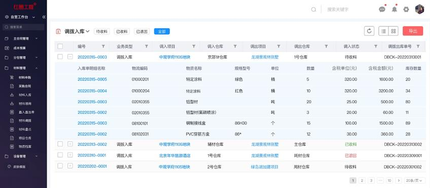 乙供材管理(量價雙控): 實現材料從預算量→累計申購量→累計采購量→累計到貨量的全流程閉環管控,有效控制材料成本。